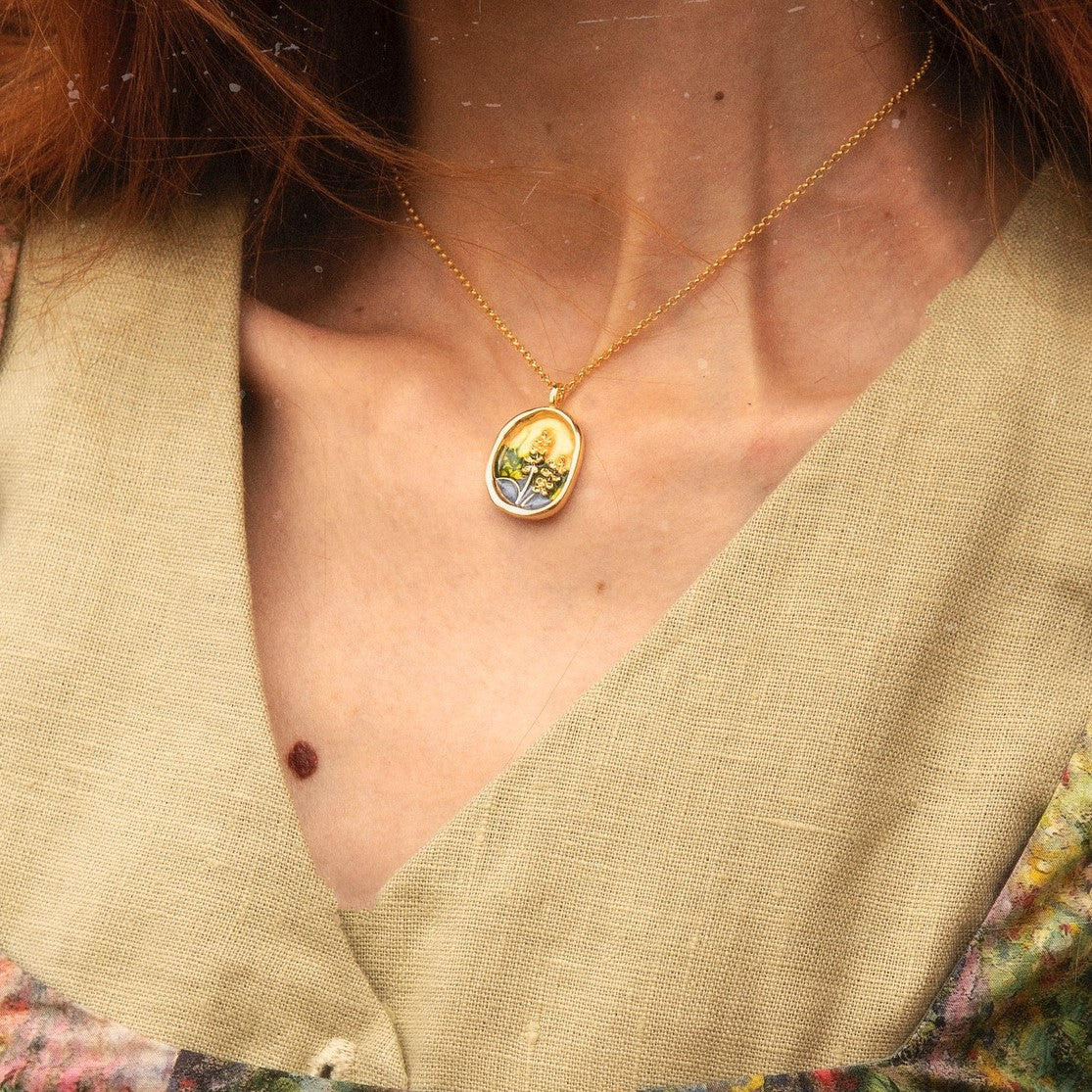 Country Cornfield Gold Oli Painting Necklace