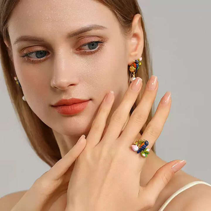 Selenichast Lotus Kingfisher Enamel Ring