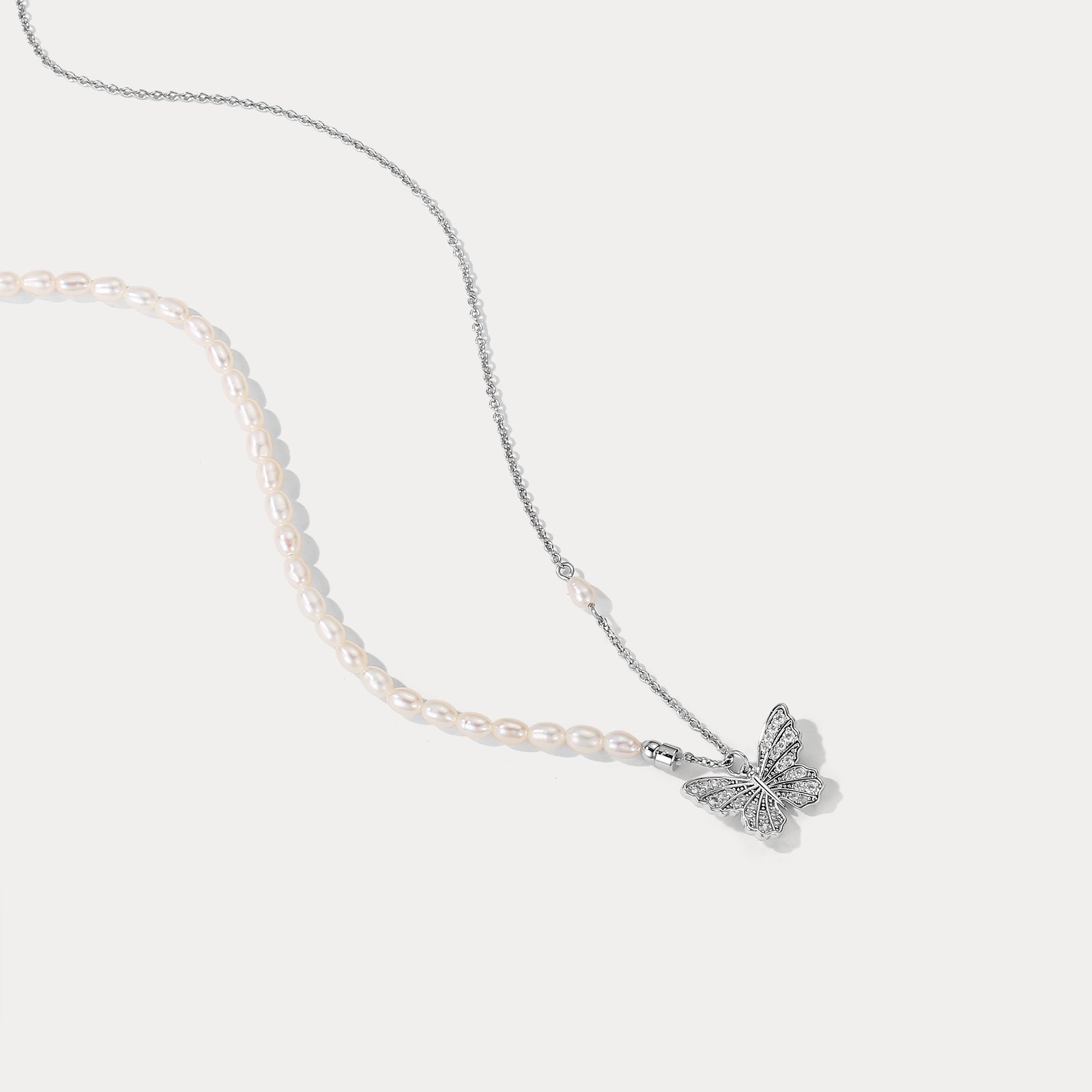 Selenichast Silver Butterfly Pearl Necklace