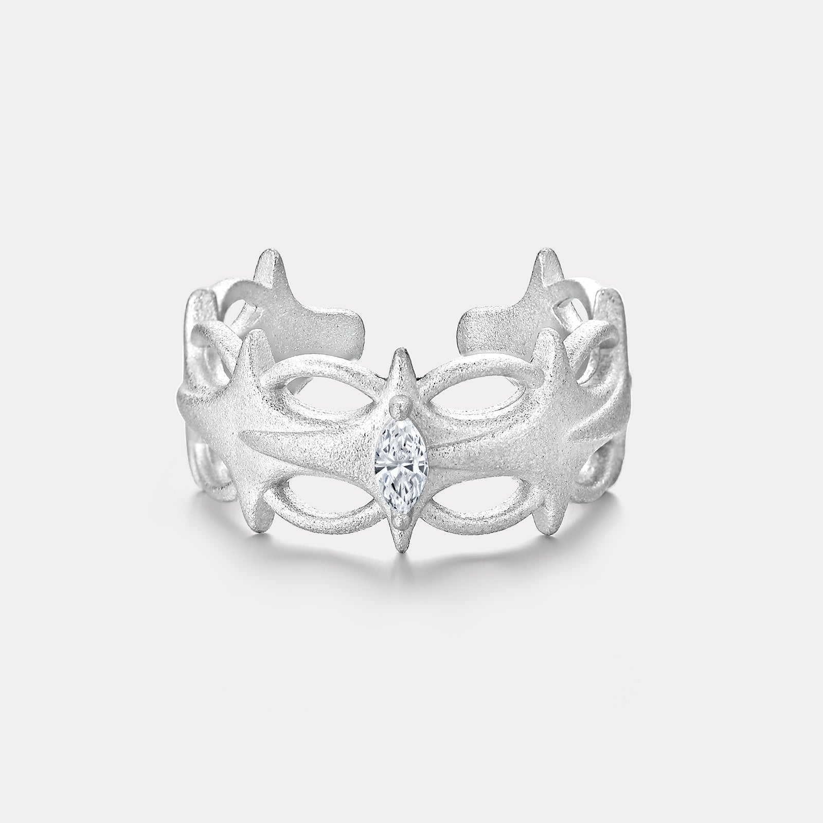 Light radiates outward through the hollow starburst design, creating an airy yet striking ring silhouette. The openwork detail keeps the piece breathable and modern, ideal for stacking rings or wearing as a subtle statement ring. Its celestial inspiration connects with trending star jewelry aesthetics. A refined gift for her who loves minimalist jewelry with symbolic depth.