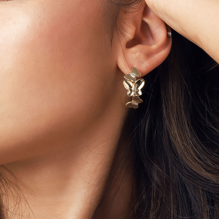 De manière exquise, ces boucles d'oreilles papillon offrent une grâce intemporelle et une élégance. Idéal pour toute occasion, le design complexe et le placage en or lumineux font de ces boucles d'oreilles un choix parfait pour la femme moderne. Ajoutez une touche de glamour et de sophistication à votre tenue avec ces accents luxueusement délicats.