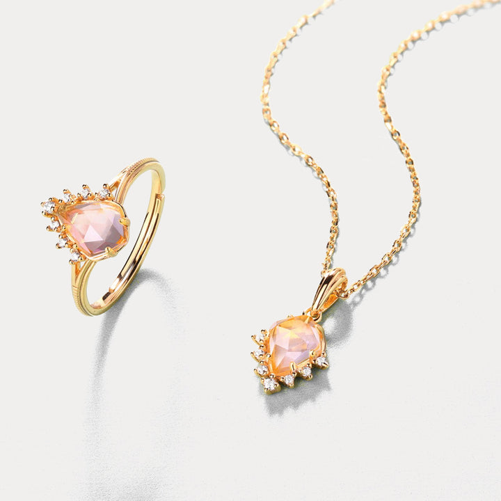 - Matériaux: 9K Gold sur Argent, Quartz rose