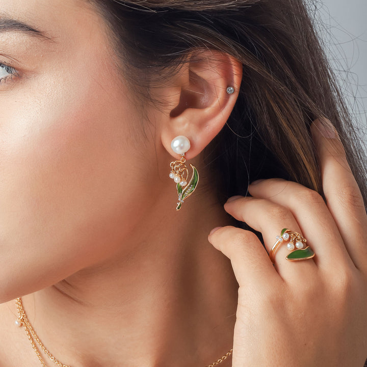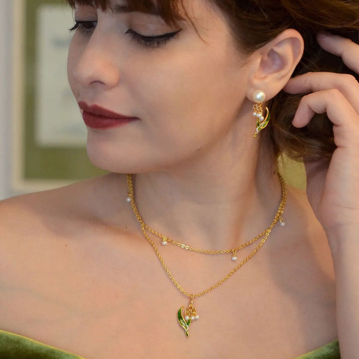 Élevez votre style avec ces boucles d'oreilles en émail de l'émail de la vallée. Parfaitement fabriqué pour présenter des tons délicats de vert et de blanc, ce design élégant ajoutera une touche florale chic à n'importe quelle tenue. Apportez une touche de sophistication et de luxe à votre collection de bijoux avec cette pièce intemporelle.>>Voir Plus Muguet Bijoux Collection.