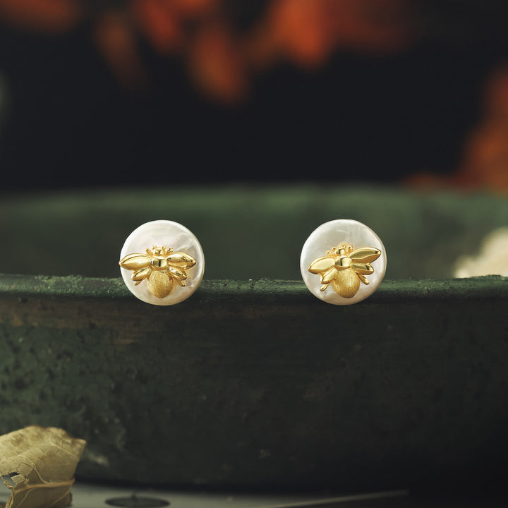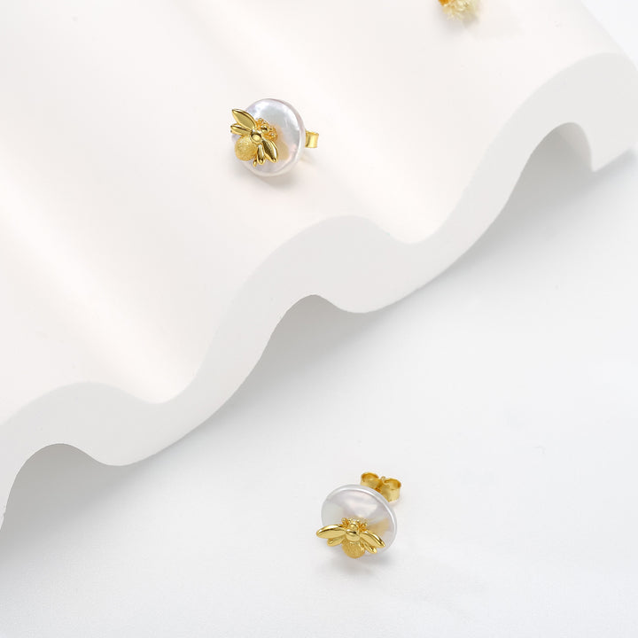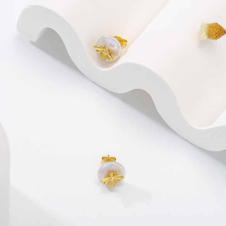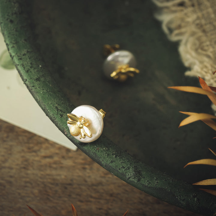 Découvrez le vrai luxe avec ces superbes boucles d'oreilles de goujon en abeille perlé. Créée à la main à partir d'or sur l'argent, chaque perle est délicatement polie à la perfection, rayonnant d'un glamour exquis qui convient à toute occasion spéciale. Idéal pour les cadeaux ainsi que sur les usures quotidiennes, ces boucles d'oreilles capturent la beauté de la nature avec l'élégance classique de la mode intemporelle.