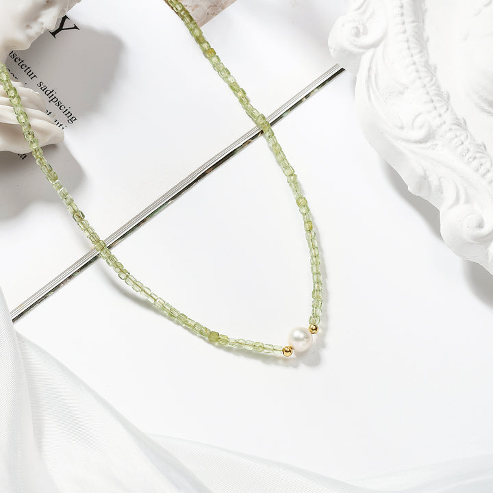 Embrassez l'élégance intemporelle de ce collier de perles de graines de perle. Fabriqué avec des perles d'olivine pour prêter une sophistication discrète, cette pièce intemporelle est parfaite pour élever n'importe quel ensemble. Un cadeau exclusif pour un être cher ou un ajout luxueux à votre propre collection.