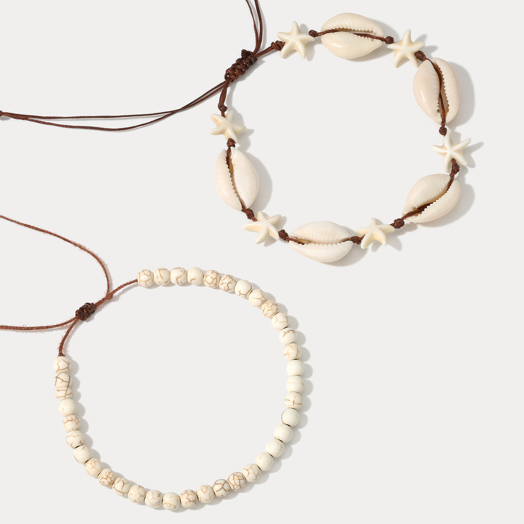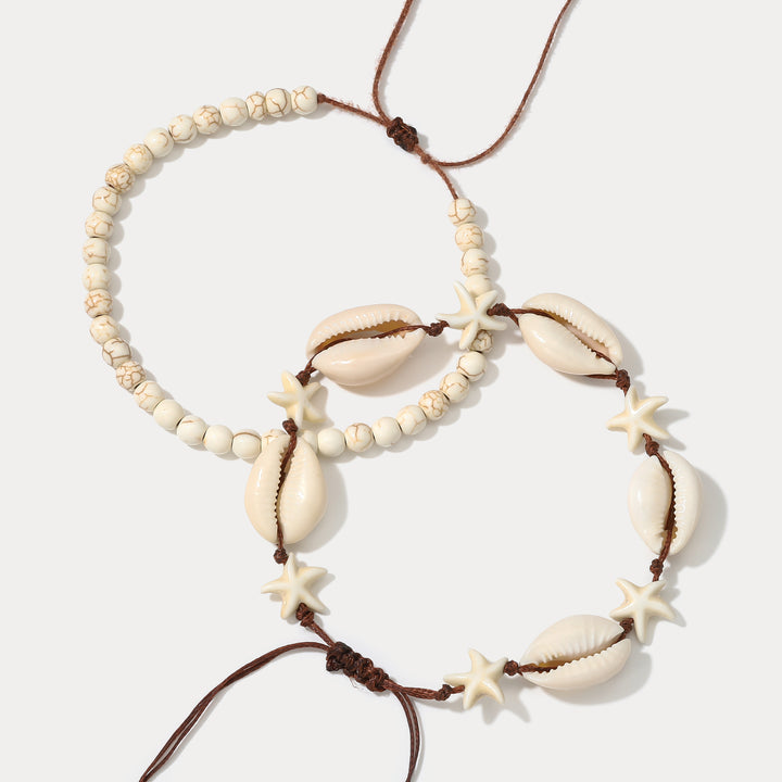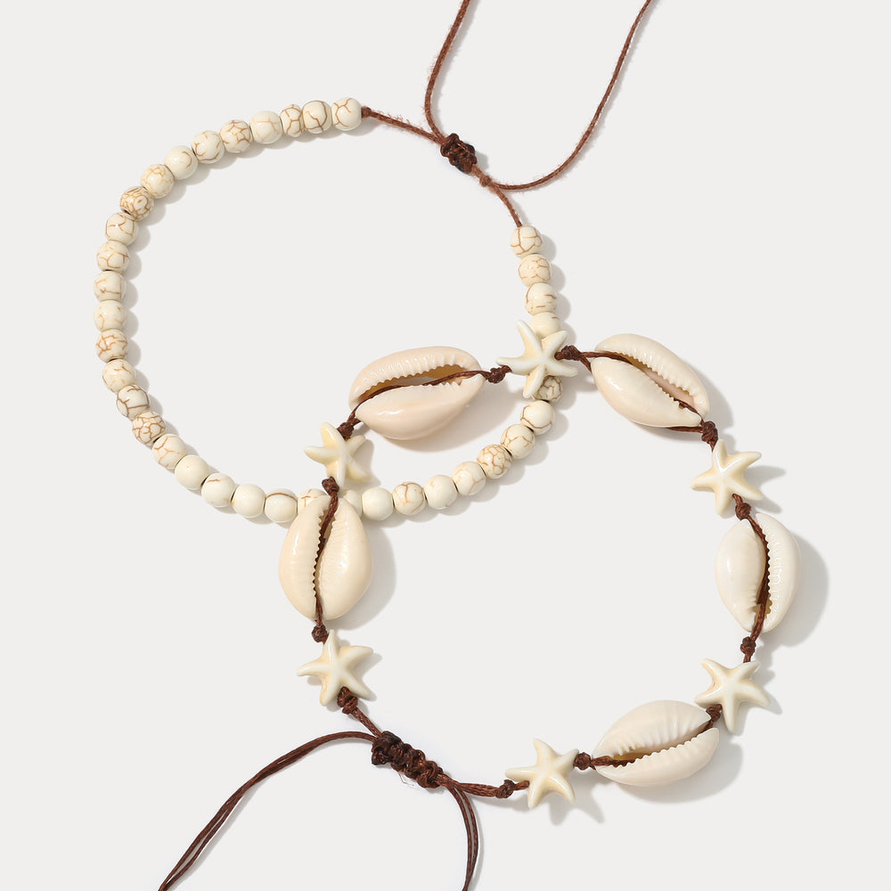 Selenichast Cowrie Shell Beaded Anklet Set