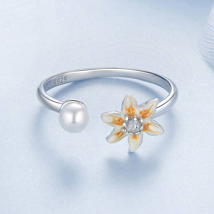 Elevate your jewelry collection with our exquisite Flower and Pearl Ring. The delicate design features a stunning flower adorned with lustrous pearls, adding a touch of elegance to any outfit. Perfect for special occasions or daily wear, this ring will make a statement and leave a lasting impression.