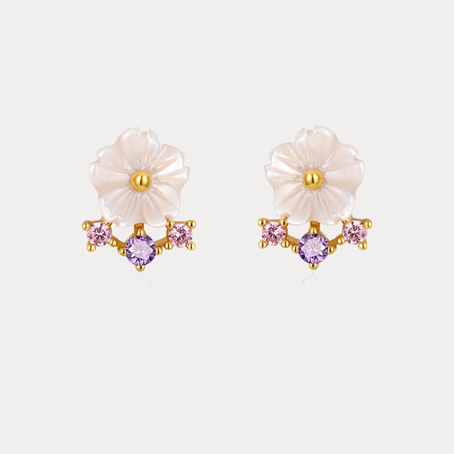 • Materials: 9K Gold on Brass, Shell, Cubic Zirconia