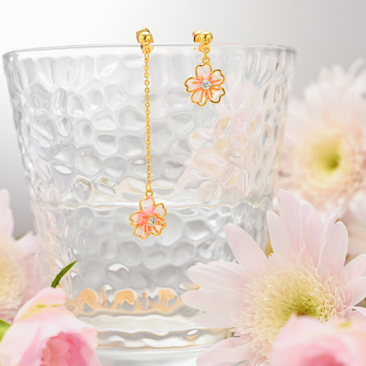 Dancing while wearing our Sakura Mismatched Earrings, you embody a delicate yet enchanting beauty. Designed with soft floral details, these long flower earrings from our Sakura Jewelry Collection symbolize the transient elegance of spring. Their subtle drop adds a refined touch, making them a perfect accessory for both casual and formal occasions. Whether worn for a special event or as an everyday reminder of nature's beauty, these earrings make a lovely gift, bringing a touch of romance and charm to any outfit.