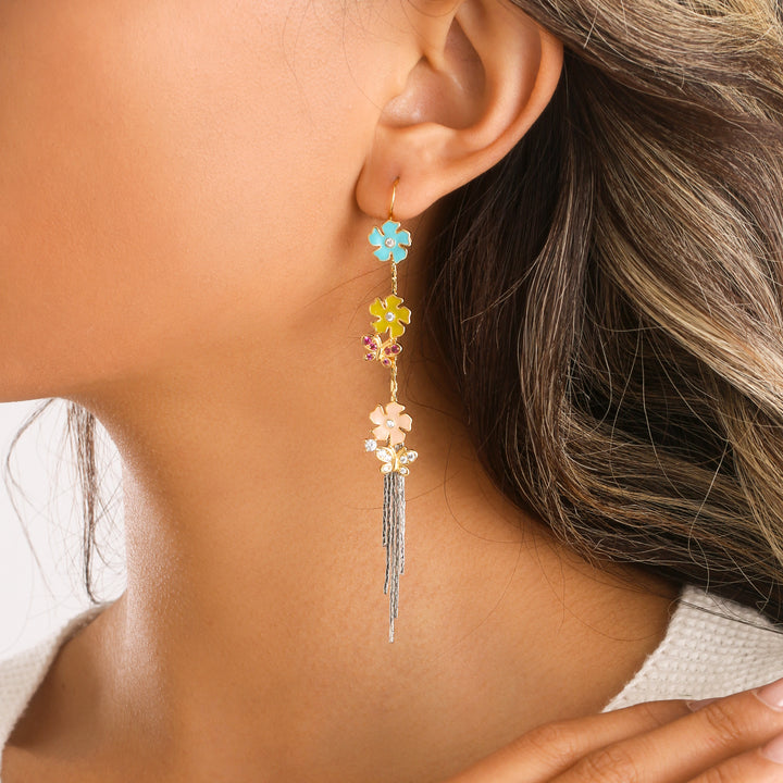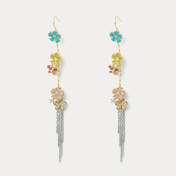 Plongez dans l'attrait enchanteur de nos boucles d'oreilles en papillon floral. 🌸🦋 Ces boucles d'oreilles en forme de goutte disposent d'une conception florale verte, jaune et rose complexe, accentuée par un magnifique papillon de diamant violet. Amélioré avec des glands délicats, ils sont idéaux pour ajouter une touche élégante à tout ensemble de dîner. Parfait pour les cadeaux, ils rayonnent la beauté et le charme naturels.