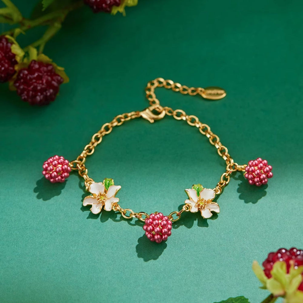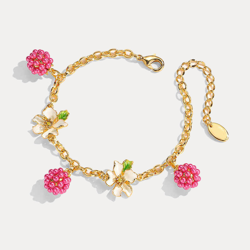This elegant Raspberry Bracelet features a delicate raspberry flower design, making it a truly special gift. Add a touch of beauty and sophistication to any outfit with this stunning bracelet.