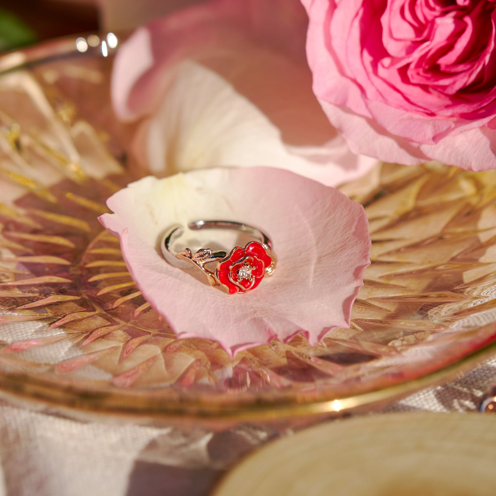 Inspired by a blooming rose branch, this ring captures the beauty of nature in delicate detail. The Rose Branch Ring features flowing lines, soft enamel touches, and a rose gold tone that enhances its organic form. Romantic yet understated, this floral ring is ideal for those who love nature-inspired rose jewelry and makes a heartfelt Valentine’s Day gift for her.