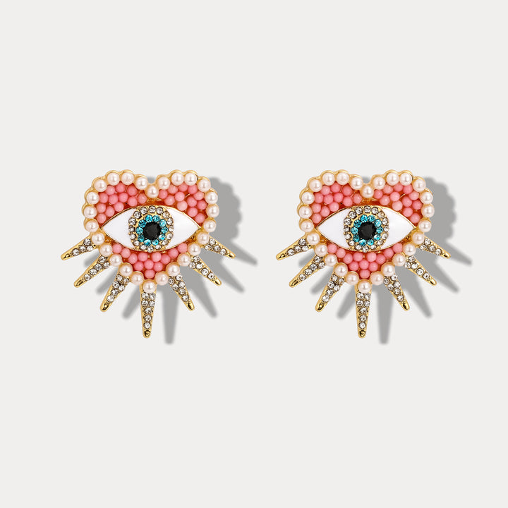 Pink Heart Sun Diamond Evil Eye Pearl Earrings