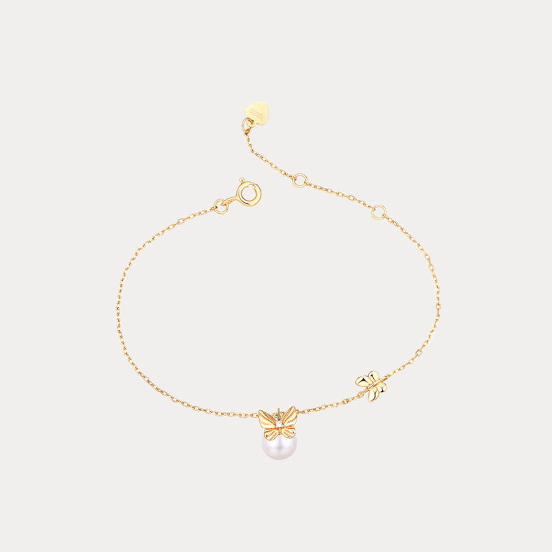 Dream Catching Butterfly Pearl Gold Charms Bracelet