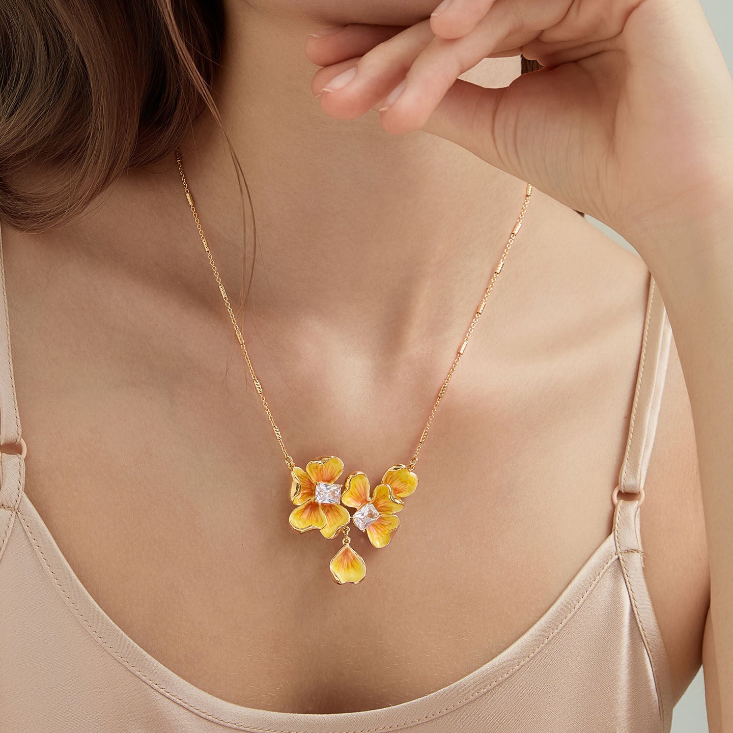 The pendant hangs from an 18K Gold Plated chain, reflecting light with every movement and adding a whimsical touch to your neckline. This nature-inspired design celebrates the charm of springtime and the beauty of small details, making it a perfect Gift for Her. Wear it alone or layer it with other dainty necklaces for a subtle yet enchanting look.