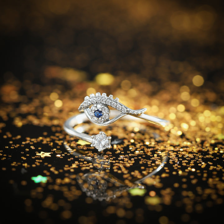 Silver Evil Eye Lucky Diamond Wedding Ring