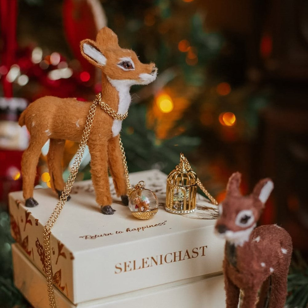 Inside this tiny glass world, winter quietly sparkles. The Christmas Reindeer Globe Necklace captures the magic of a snow-covered night — an adorable reindeer standing beneath twinkling stars, surrounded by soft, glittering snow. Crafted with love, this globe pendant necklace brings a little piece of the holidays wherever you go. It’s more than holiday jewelry — it’s a keepsake of warmth, wonder, and cozy Christmas dreams. A heartfelt Christmas gift for her, perfect for those who still believe in the beauty of winter magic. ✨🎁💗