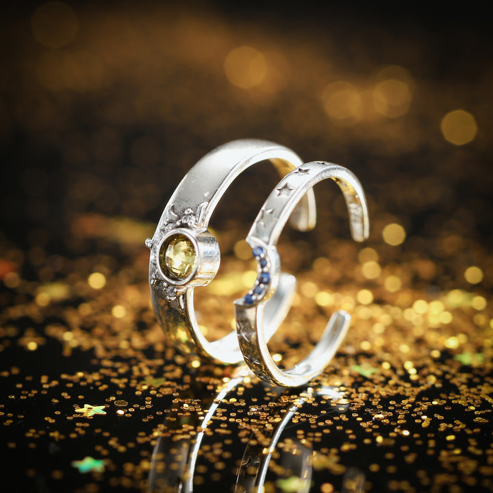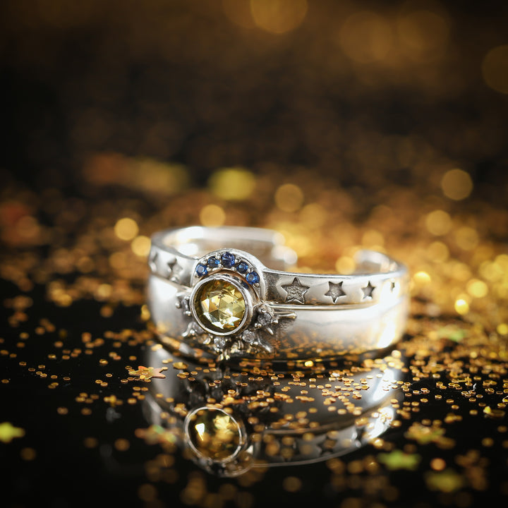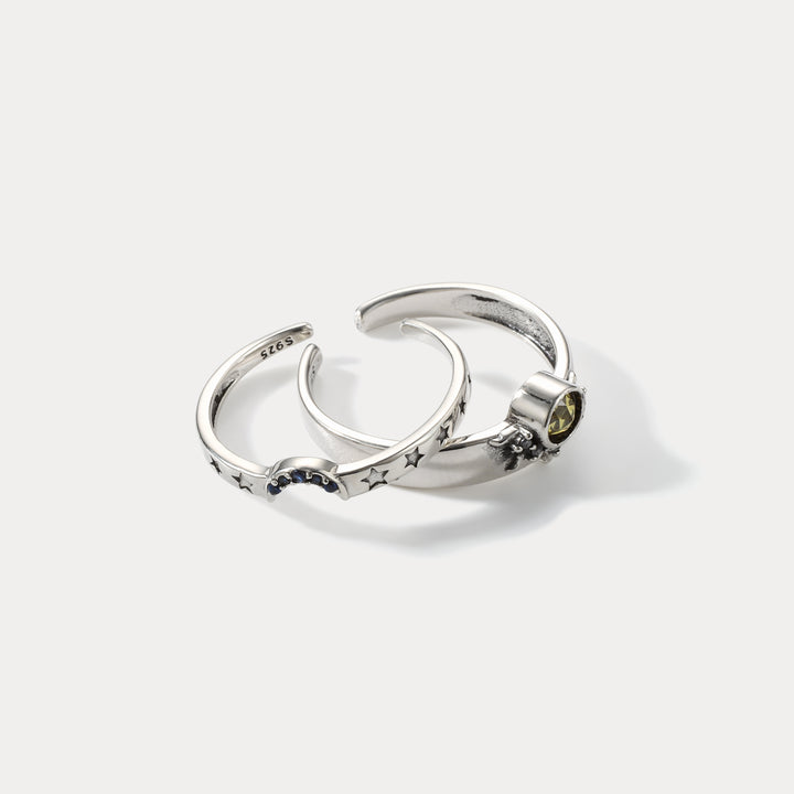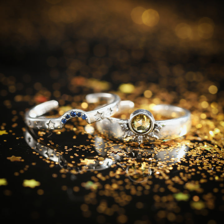 Guardando il nostro anello di trilogia celeste d'argento, una composizione stellare in argento sterling. Questo anello accattivante presenta un trio di elementi celesti: un sole radioso, una luna a mezzaluna e una stella delicata. Ideale per l'abbigliamento quotidiano, aggiunge un tocco di fascino cosmico alla punta delle dita. (Attenzione: può causare un aumento dei complimenti!)