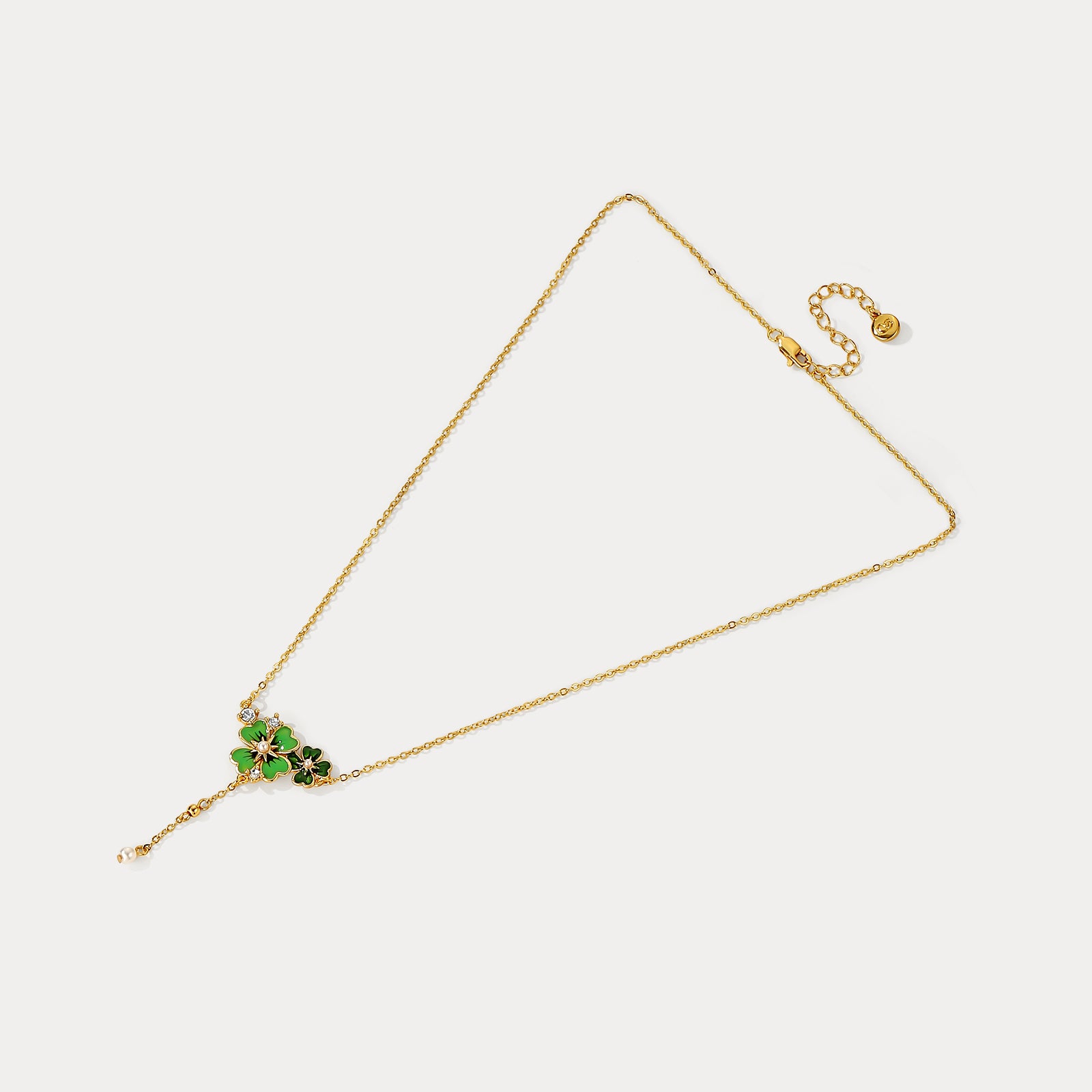A tiny four leaf clover blooms like a small gift from nature, resting gently at the center of this necklace. Finished with smooth green enamel and a warm 18K gold tone, it carries a soft sense of lucky charm and quiet fortune. Light and meaningful, this enamel necklace is easy to wear every day and makes a thoughtful gift for her who loves nature-inspired jewelry.