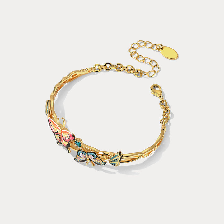 Questo esclusivo braccialetto farfalla è realizzato con lo smalto in ottone di alta qualità, rendendolo un gioiello chic per ogni occasione. Con un design sottile ma elegante, questo braccialetto farà una dichiarazione ovunque tu vada. Indossalo con fiducia e goditi la sua bellezza unica. Il braccialetto farfalla trasporta farfalle colorate e delicate di dimensioni diverse. Questo braccialetto è tra le collezioni di gioielli naturali sul gioiello Selenichast. Sarebbe un pezzo accattivante nella tua scatola di gioielli.