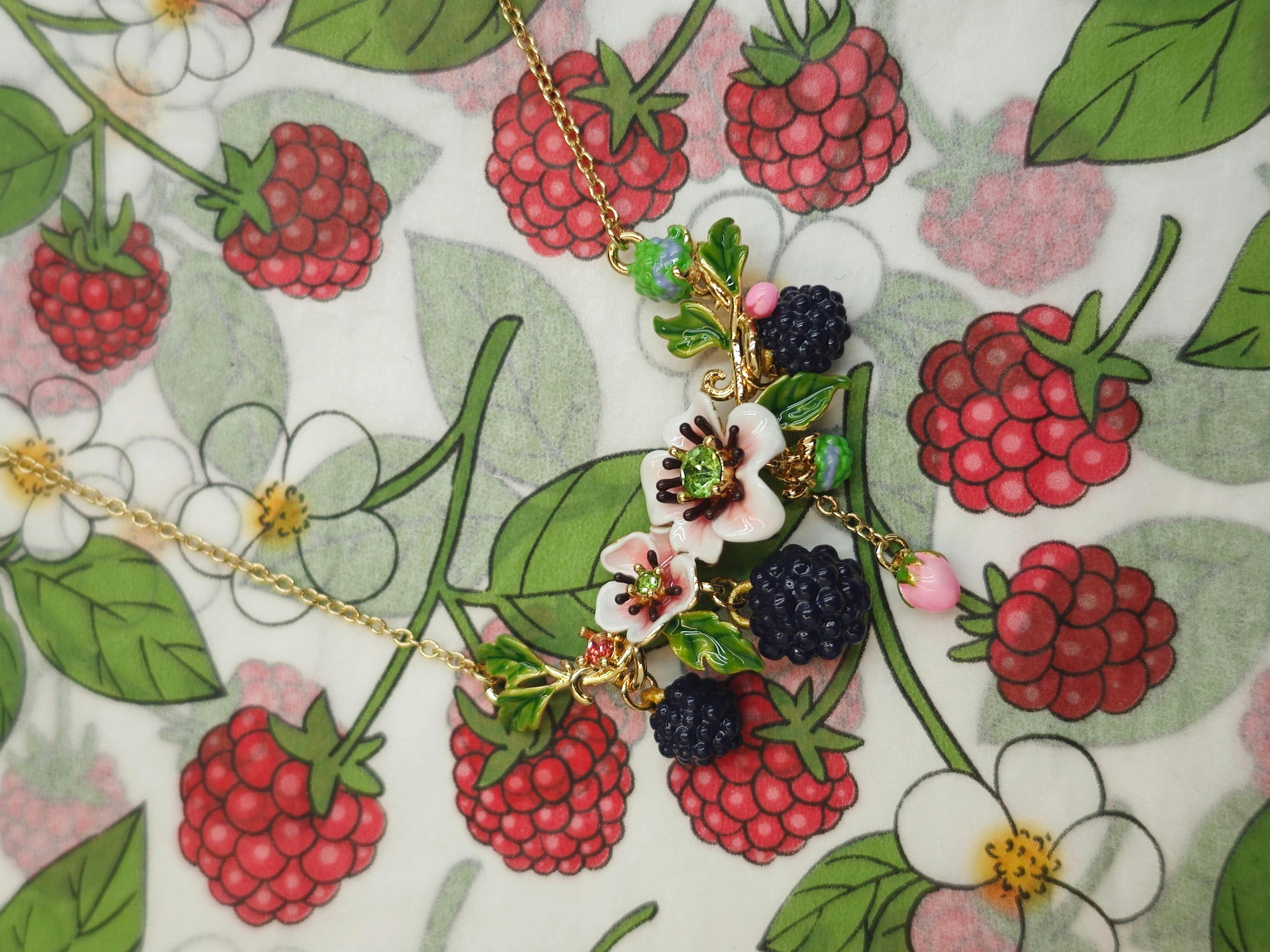 Wow, this necklace is delicate! The flowers and blackberries are beautifully crafted, and the colors are perfect. It gives such a charming, fairy-like vibe and truly justifies the price. I’m in love!