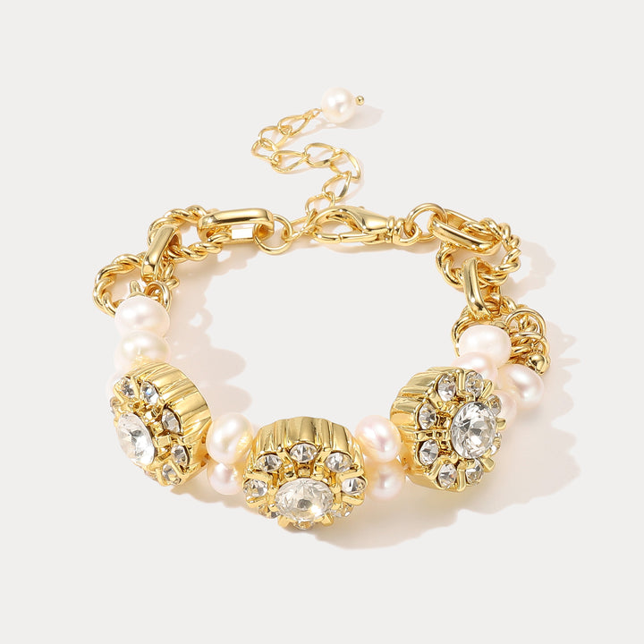 Diamond Blossom Pearl Bracelet Anniversary Jewelry Gift for Her