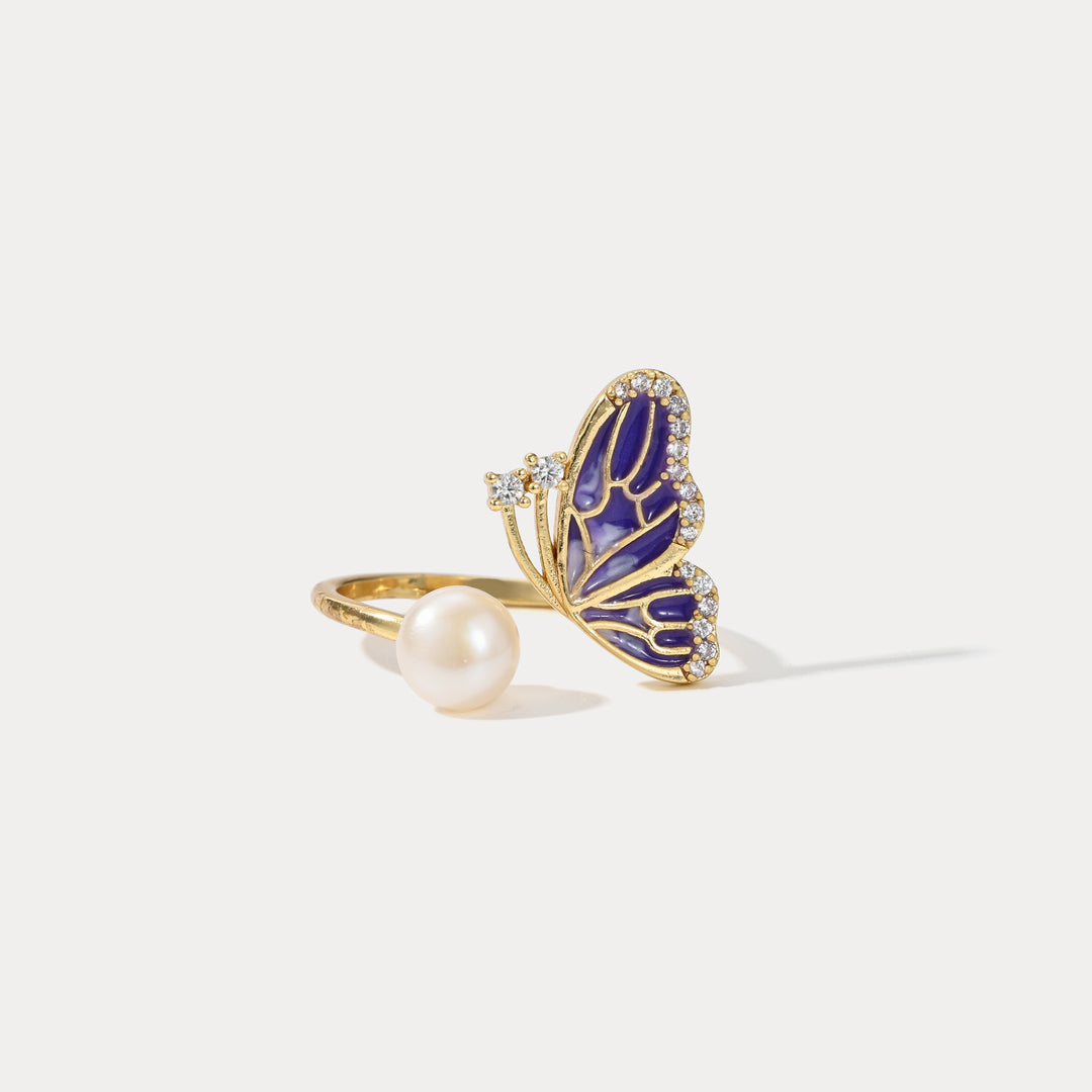 Unveil the epitome of elegance with our Half Butterfly Pearl Ring, a captivating fusion of nature's grace and timeless beauty. This exquisite piece features a delicately crafted butterfly wing adorned with glistening crystals, juxtaposed against a lustrous pearl that exudes sophistication. Made from 18K gold-plated brass and high-quality enamel, this ring is not just a statement piece but a work of art. Its open design adds a modern twist, allowing it to sit elegantly on your finger while effortlessly elevating your style. Whether paired with a casual outfit or an evening gown, this ring brings a touch of enchantment to any ensemble, making it an indispensable addition to your jewelry collection.