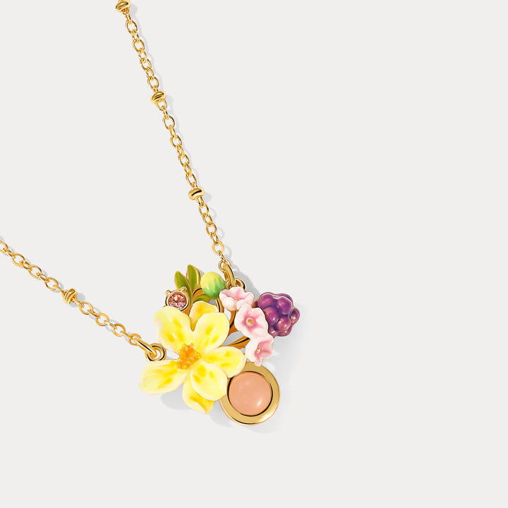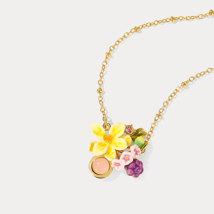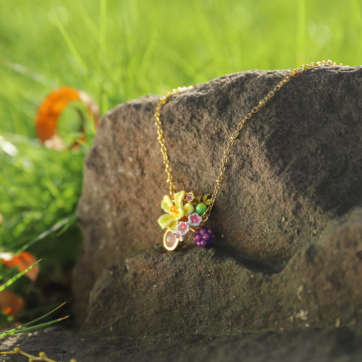 Sweet Grape Flower Enamel Necklace Birthday Jewelry Gift for Her