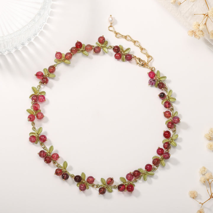 Adornati nella bellezza della collana di mirtilli rossi. Vantando gemme della più bella lucentezza del mirtillo rosso, accessoriato a qualsiasi look con un tocco senza tempo di eleganza, per un aspetto di esclusività che solo il lusso può fornire.