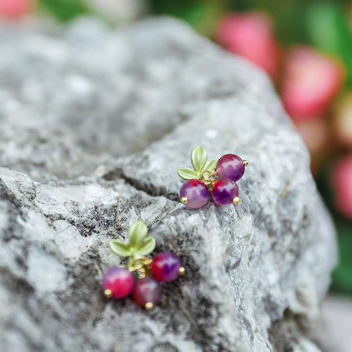 Questi orecchini viola di berri offrono uno squisito tocco di eleganza. Aftermamente realizzati in agata, gli orecchini catturano la bellezza delle bacche viola, perfetta per una serata fuori o un'occasione speciale. Con un sottile luccichio e un fascino sottile, questi orecchini aggiungeranno un tocco di lusso a qualsiasi outfit.