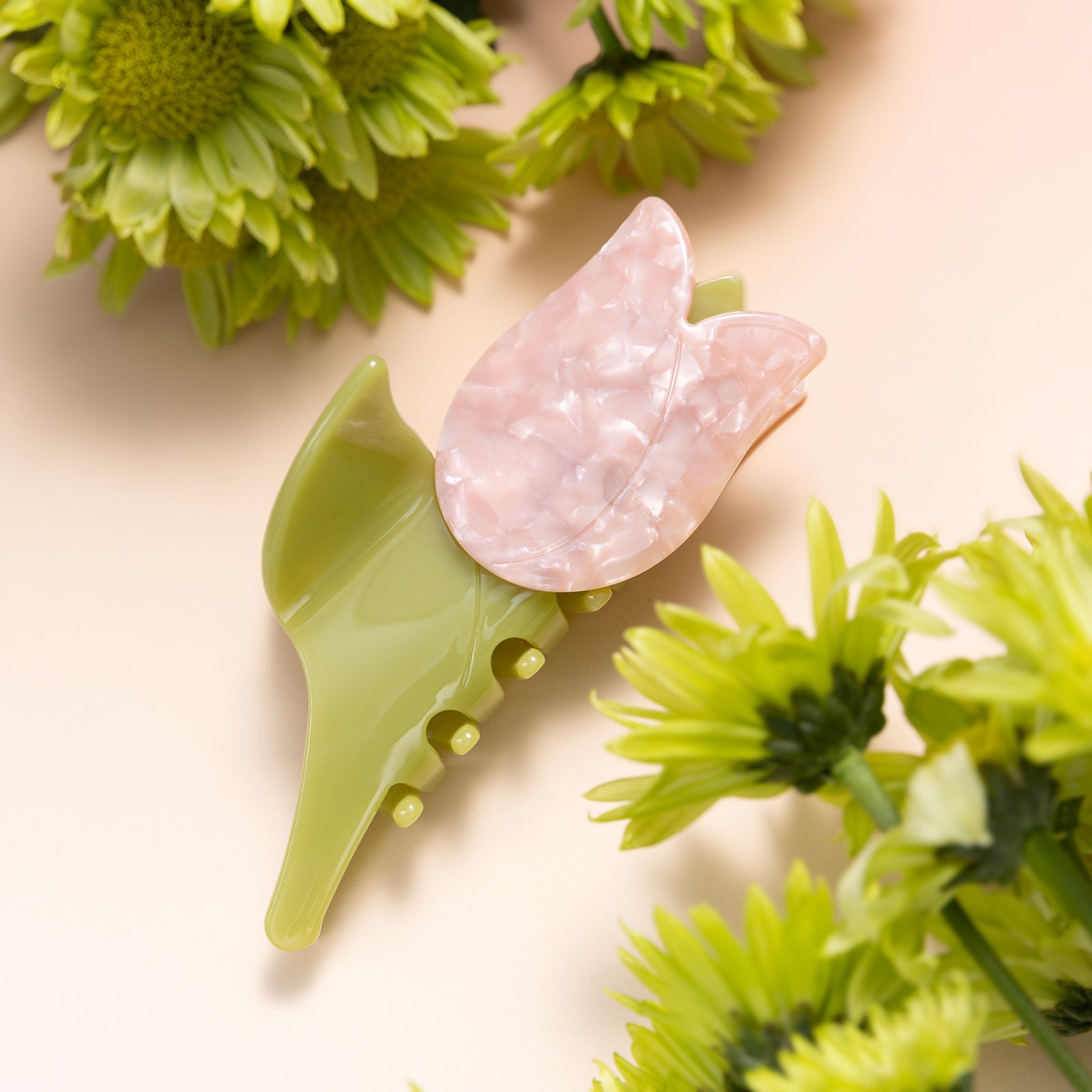 The Tulip Claw Clips feature a beautiful, nature-inspired design, bringing the elegance of tulip flowers to your hair. Made from high-quality acetate, these clips offer a secure grip, making them ideal as claw clips for thick hair. The cute tulip design adds a touch of floral charm to any look, perfect for summer days or special occasions. These hair accessories combine functionality with style, ensuring your hair stays in place while adding a delicate floral accent. A thoughtful gift for women, these clips bring a refreshing, nature-inspired touch to any jewelry collection.