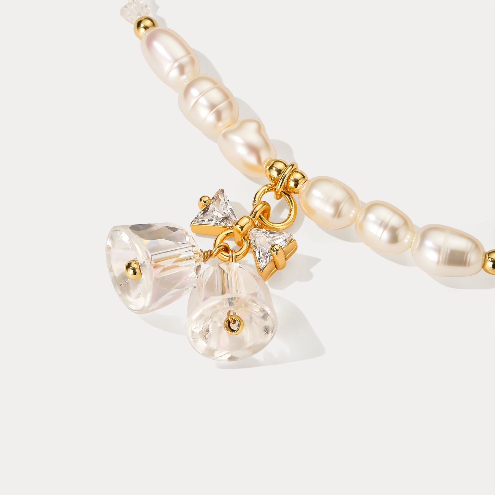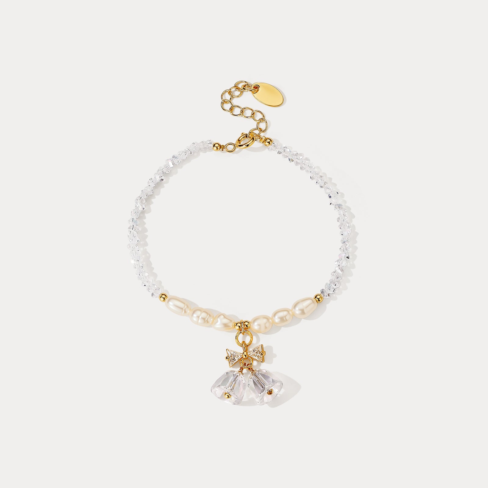 Lily of the valley motifs bloom along this crystal bracelet, capturing the softness of spring gardens. Nature inspired jewelry lovers will appreciate the floral symbolism and gentle sparkle woven into a lightweight design. It layers effortlessly with minimalist bracelets while still carrying delicate detail. A lovely birthday gift or keepsake gift for her.