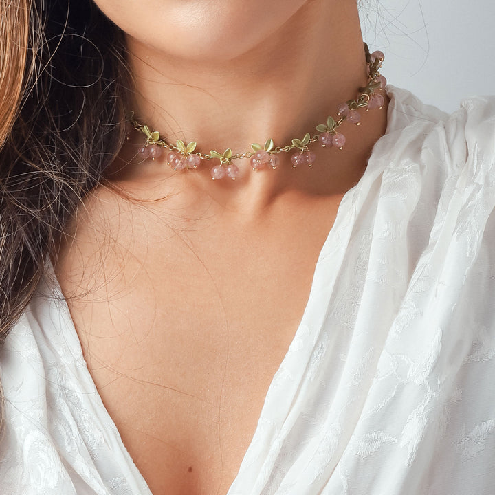 Influsi il tuo guardaroba con un tocco pastorale della natura con la nostra collana di bacche rosa. Questo bellissimo pezzo è realizzato in ottone e agata ed è la scelta perfetta per aggiungere un tocco di cottagecore a qualsiasi outfit. Con un design audace ed elegante, questa collana diventerà sicuramente un regalo prezioso per qualsiasi occasione speciale.