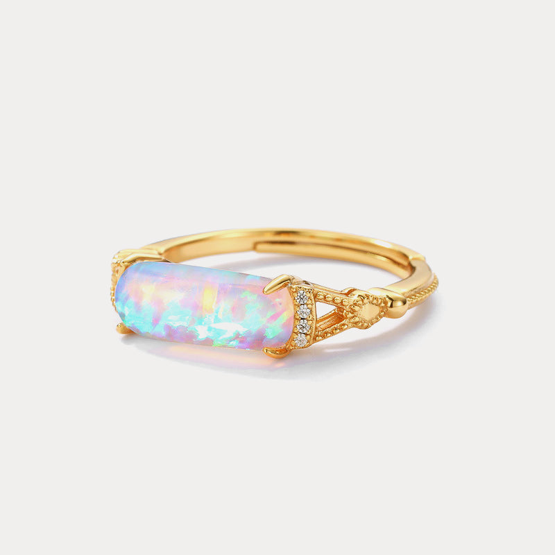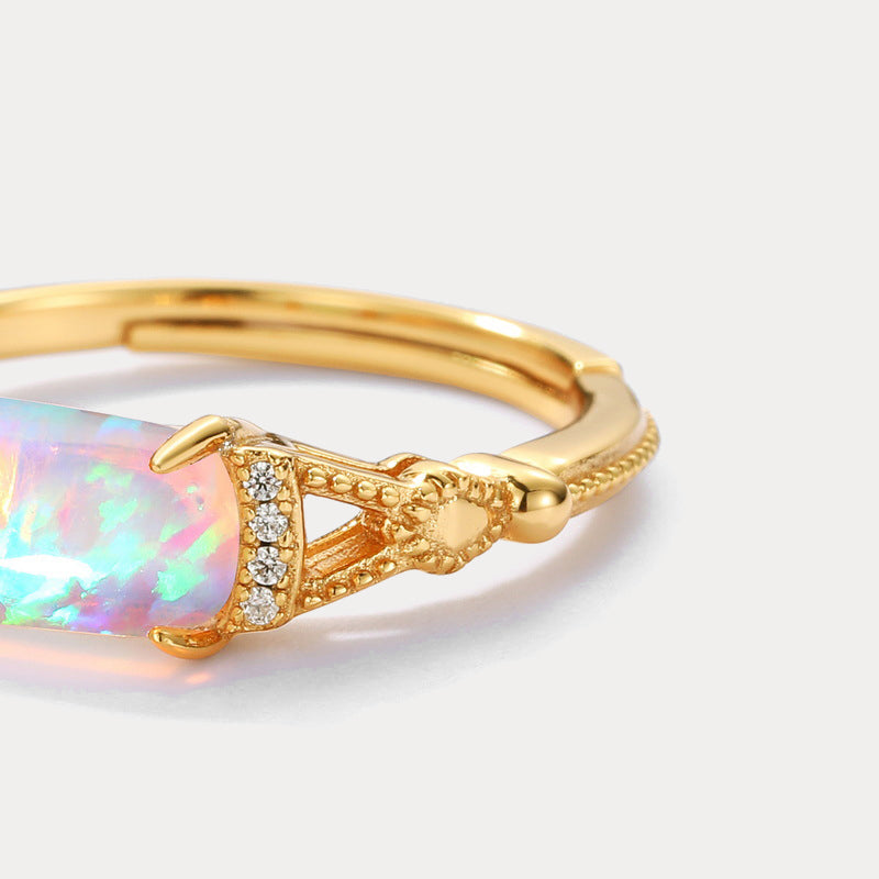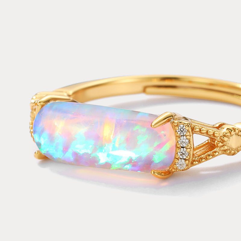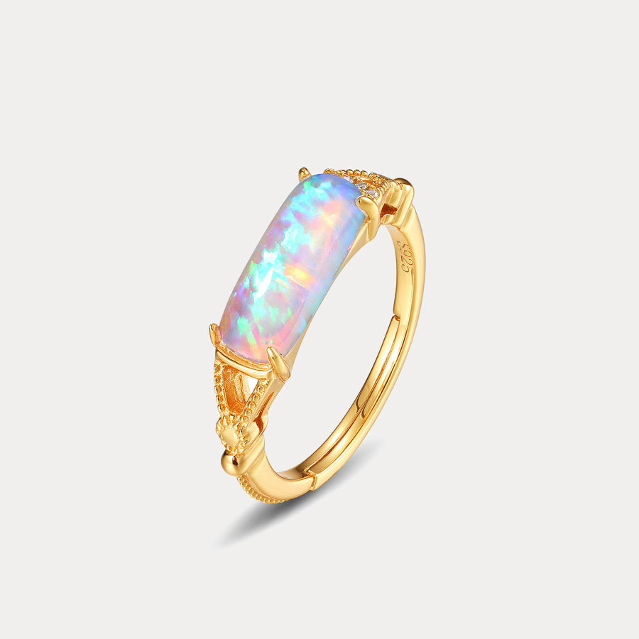 Adorna la mano con un cimelio senza tempo quando scivolerai su questo anello opale. Realizzato con oro 18K in ottone, questo accessorio sorprendente è un capolavoro di arte e gusto. Il tuo look irraderà eleganza e grazia quando ostenti questo squisito anello opale.