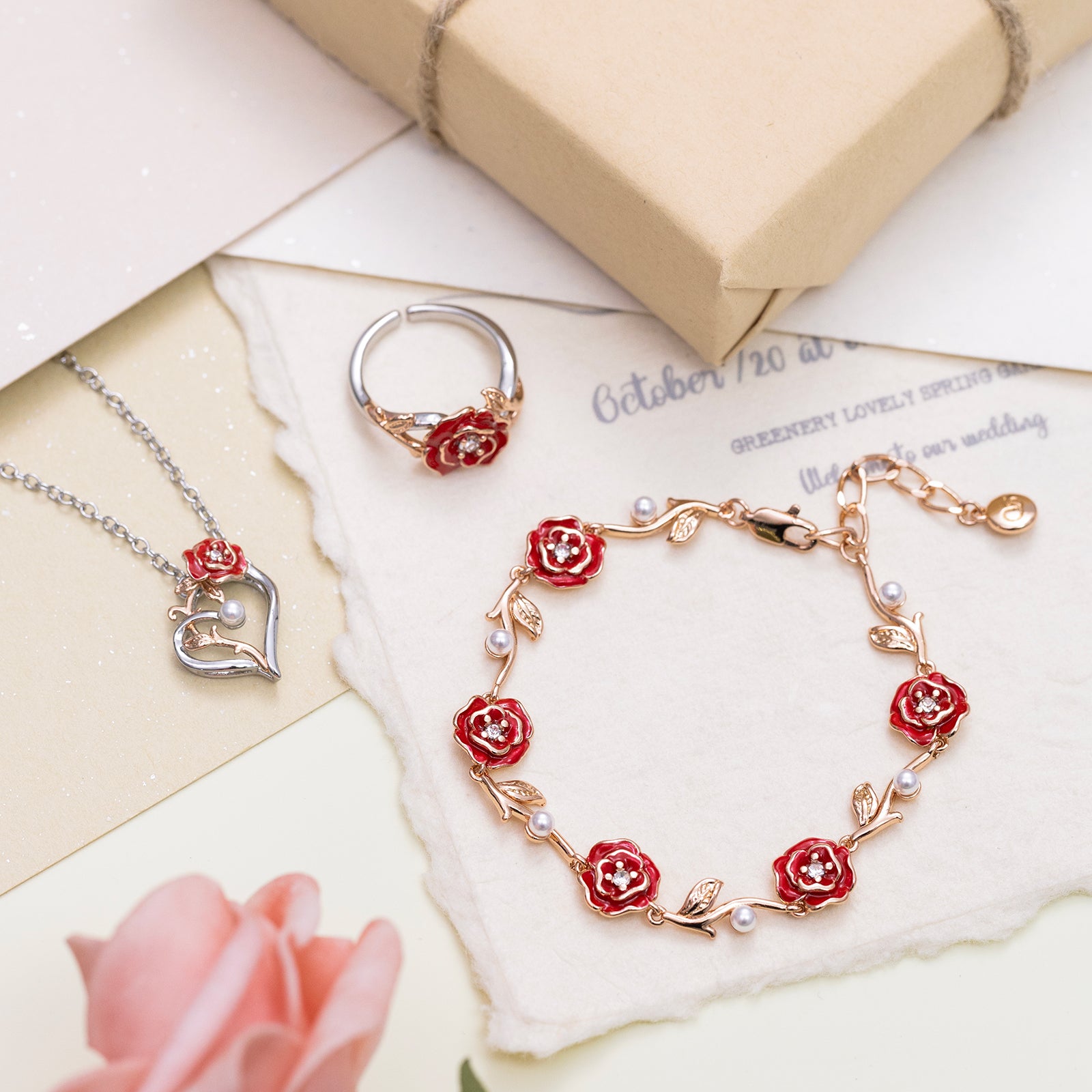 A heart-shaped rose blooms quietly at the center of this necklace, symbolizing love in its most tender form. The Rose Heart Necklace features delicate enamel detailing and a soft rose gold tone finish, blending romantic design with gentle color. Feminine and expressive, this rose necklace is a beautiful choice for Valentine’s Day jewelry and a meaningful gift for her.