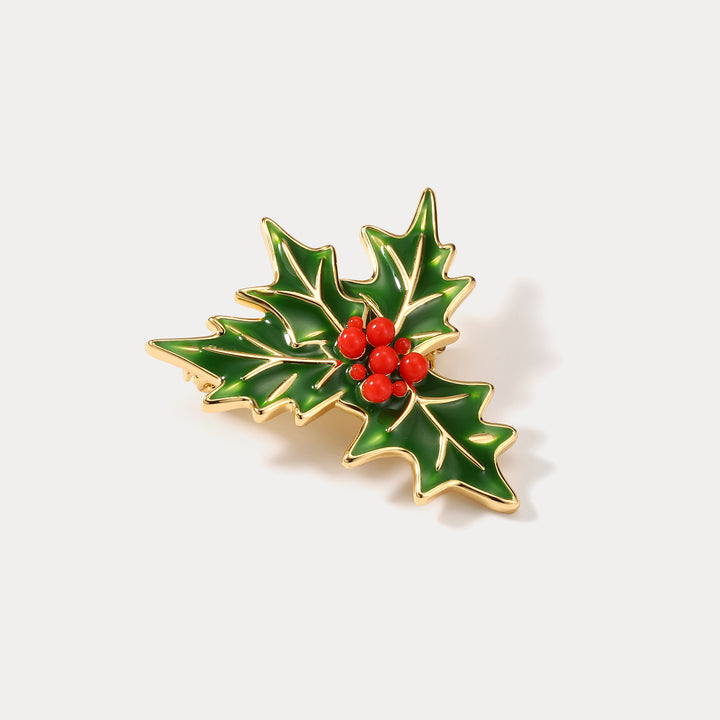 Selenichast Merry Christmas Holly Brooch