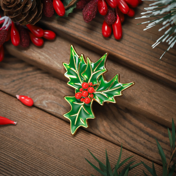 Merry Christmas Holly Brooch for Women