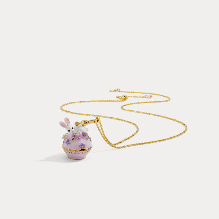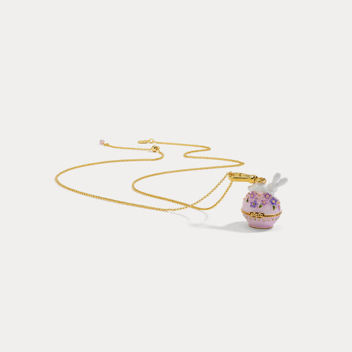La collana di medaglioni di coniglio molto carina e giocosa è per ricordarti i tuoi ricordi felici d'infanzia e impressionarti con la sua lavorazione ben colorata e di alta qualità. Squisitamente smaltato in ottone, questa collana presenta un piccolo coniglietto che posa su una scatola che è impreziosita da fiori di non dimenticare. La combinazione di un bellissimo coniglio e dei fiori di non dimenticare che non sono una bellissima illustrazione di bellezza e romanticismo elegante, rendendolo un gioiello a cui le donne non possono resistere.