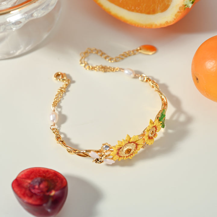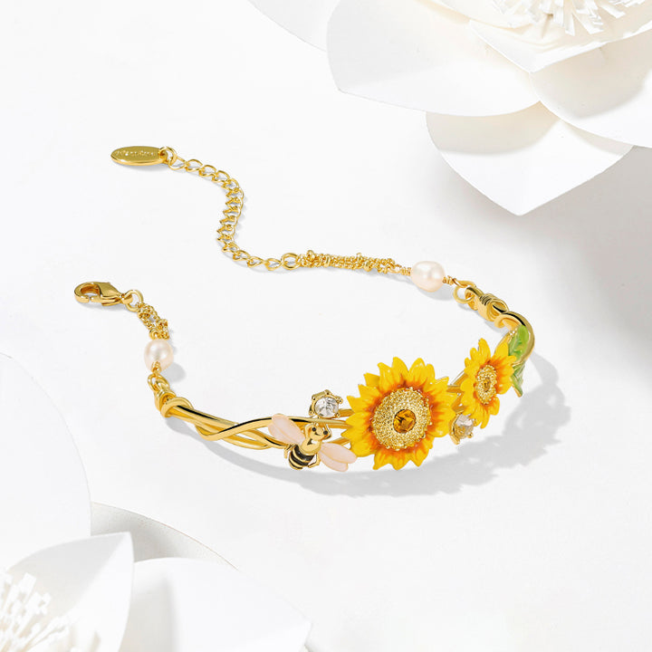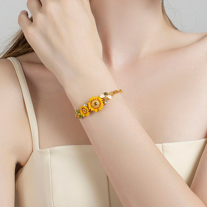Sii incantato da questo squisito braccialetto di girasole e api, realizzato in smalto in ottone per un aspetto senza tempo. Attingendo al romantico fascino dell'estetica del cottagecore, questo braccialetto diventerà un accessorio prezioso per adornare il polso con grazia senza sforzo. Aggiungi un tocco di eleganza del giardino al tuo look con il braccialetto di girasole e ape dal negozio Selenichast.