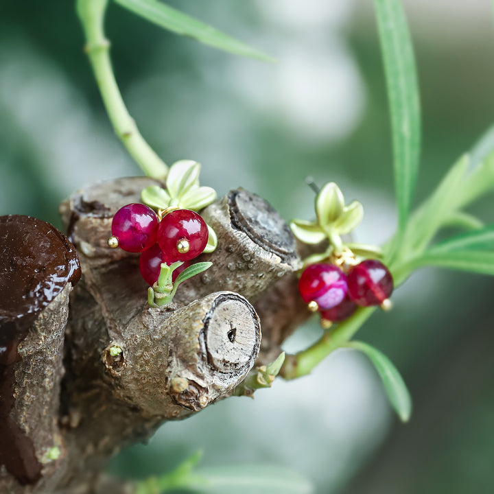 Vesti qualsiasi look con questi squisiti orecchini a perno di mirtillo rosso. Frasi a mano da lussuose agate, questi orecchini aggiungeranno un tocco di eleganza e raffinatezza a qualsiasi outfit. Perfetto per ogni occasione, l'esclusiva tonalità di mirtilli rossi delle gemme rende una dichiarazione indimenticabile come la sua le lo indossa.