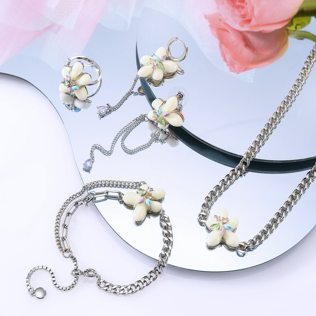 Questi orecchini di fiori di crema unici nel loro genere evocano la grazia e la bellezza della natura. Artigianato a mano dal rame e una splendida tonalità di crema, ogni orecchino presenta un intricato design di fiori che aggiunge un tocco sottile e femminile a qualsiasi look. Perfetti per ogni occasione, questi orecchini faranno sicuramente una dichiarazione.