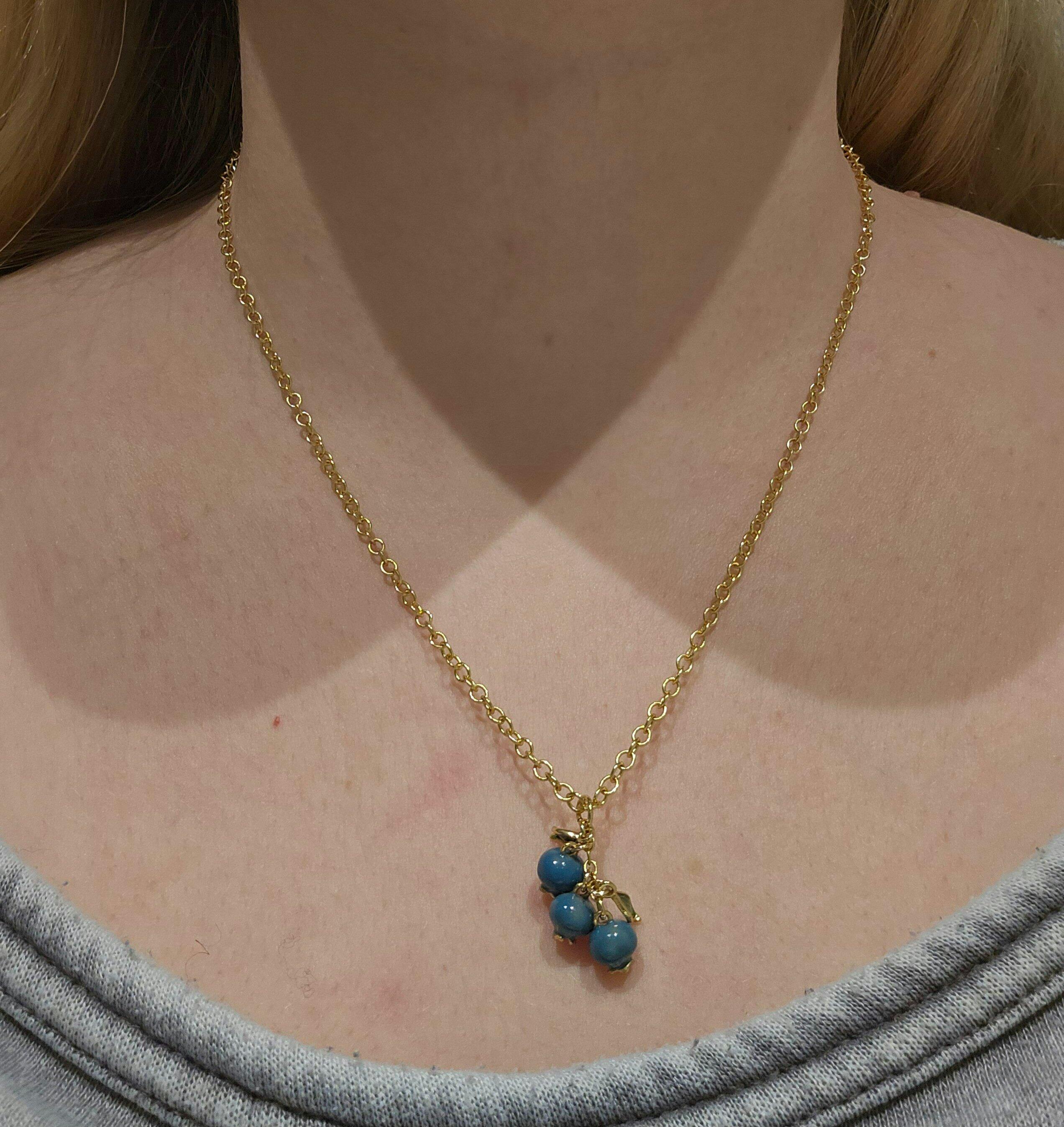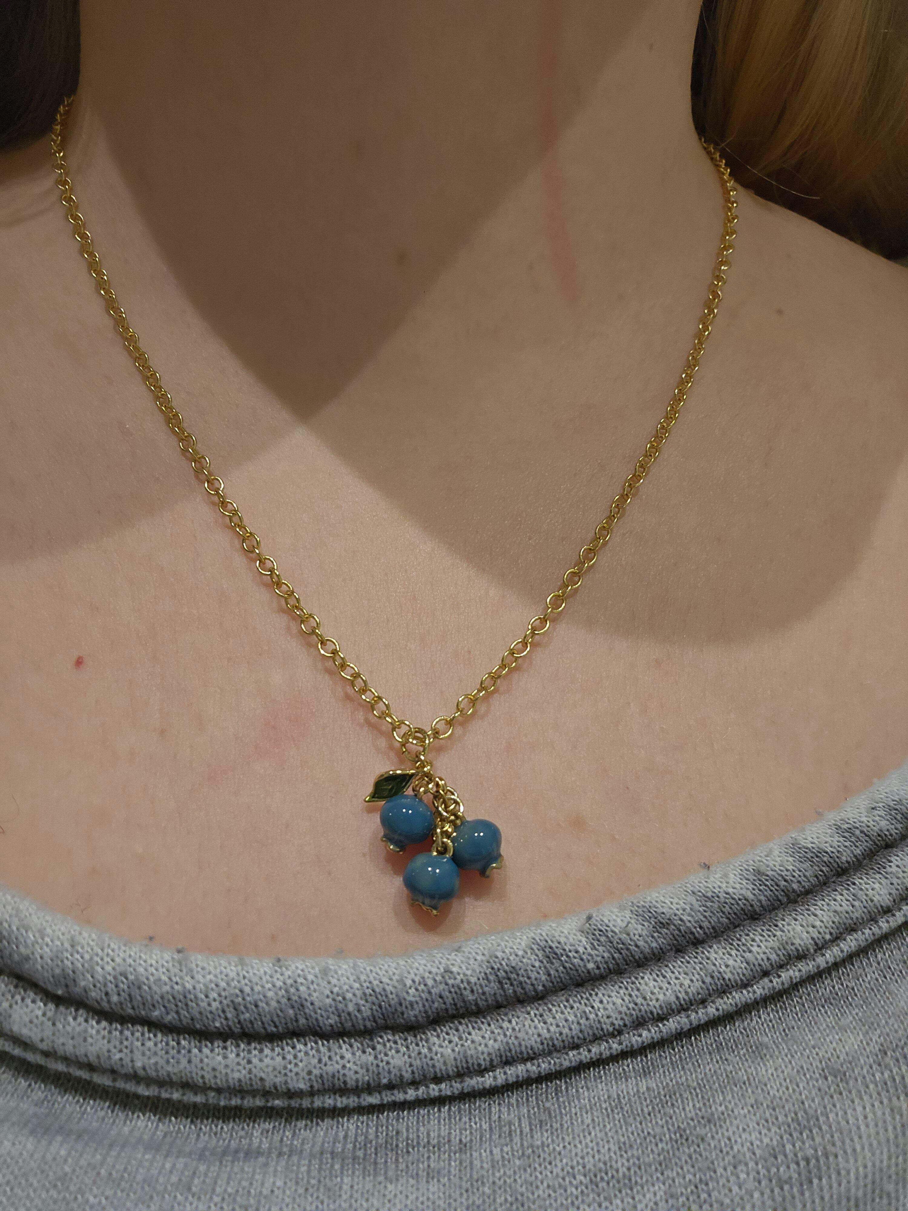 The blueberry necklace is very pretty and I love the whimsical elegant look it gives.