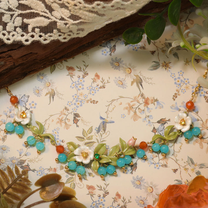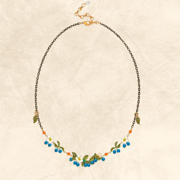 블루 베리 꽃 목걸이로 자연의 아름다움을 방출하십시오. 고품질 18k 금으로 제작 된 각 스파클링 베리는 섬세한 에나멜 마감 처리 된 즐거운 잎과 꽃으로 섬세하게 둘러싸여 있습니다. 이 우아하고 시대를 초월한 작품으로 스타일을 높이고 여름 분위기를 포용하십시오. 새로운 은혜와 성격의 느낌을 느끼십시오!