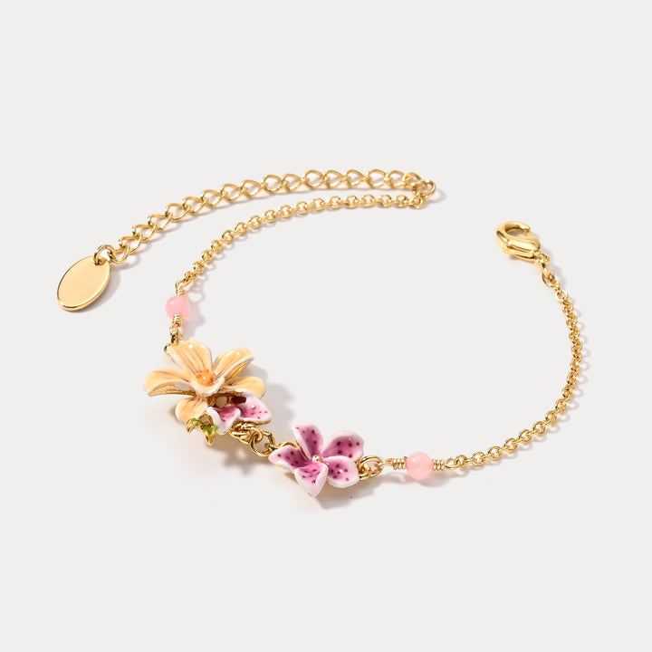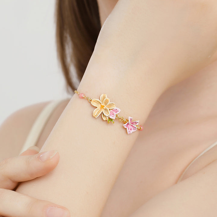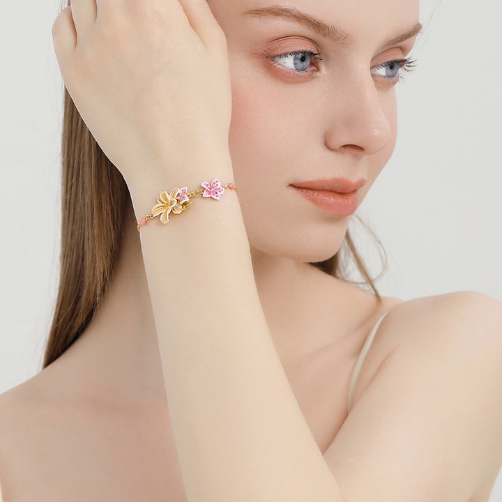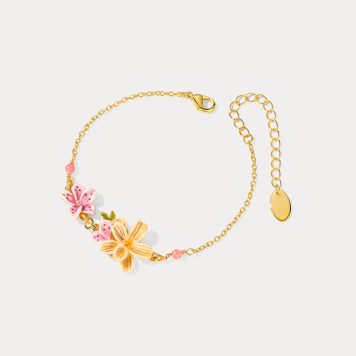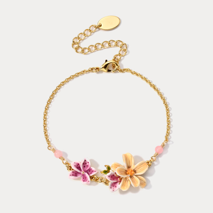 Garden Flower Enamel Bracelet Anniversary Jewelry Gift for Her