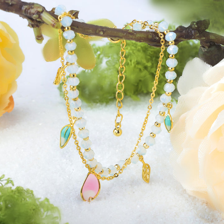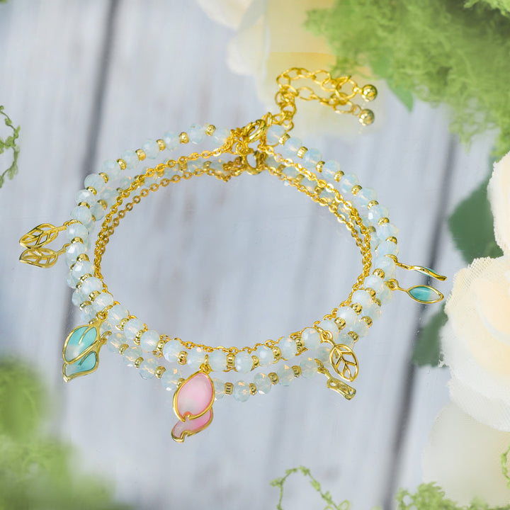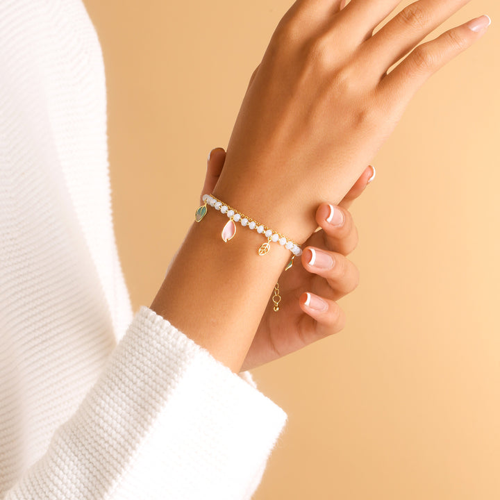 Celebrate life's enchanting moments with the Sakura Charm Bracelet. Made with a delicate, minimalist aesthetic, this charms bracelet features dainty, floral-inspired elements that evoke the serene beauty of a cherry blossom. The gleaming gold-plated chain and charms create an elegant, feminine piece ideal for everyday wear or a special occasion. A thoughtful birthday gift that captures the joy of the present.