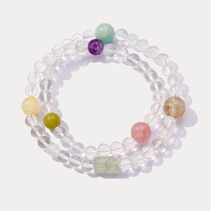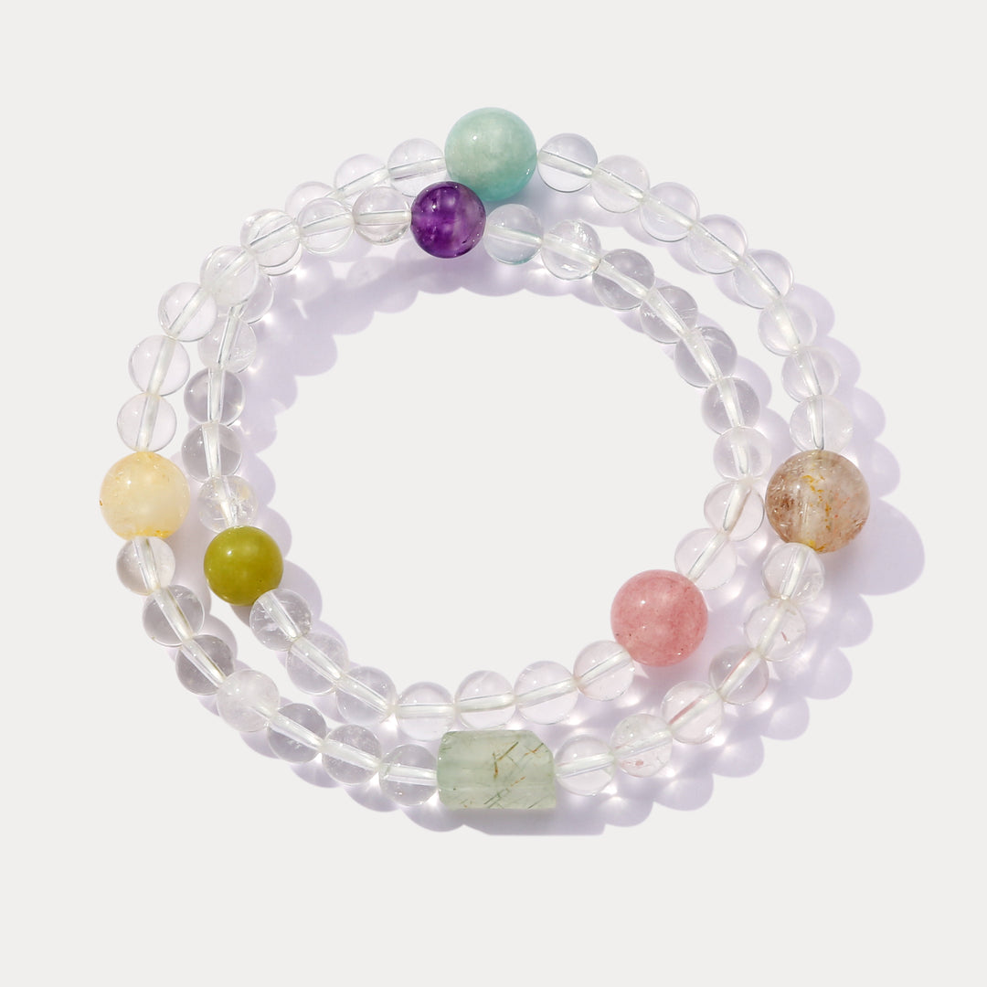 Add a vibrant touch to your style with this Clear Quartz Beaded Bracelet, featuring clear quartz paired with colorful natural crystal beads. This combination not only enhances your outfit but also promotes clarity and positive energy throughout your day. Designed with a 2-layer structure, this bracelet adds an extra element of depth and texture. Perfect for those seeking both beauty and balance, this versatile accessory uplifts your spirit while complementing any look.