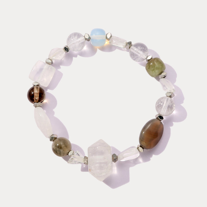 Elevate your style and energy with this Clear Quartz Crystal Bracelet, featuring a harmonious blend of Moonstone, Clear Quartz, Smoky Quartz, and Serpentine Jade. Each stone is carefully selected to enhance clarity, balance, and protection, making this clear quartz bracelet not only a stunning accessory but also a meaningful addition to your daily wear. Perfect for those seeking both beauty and positive energy in one elegant piece.