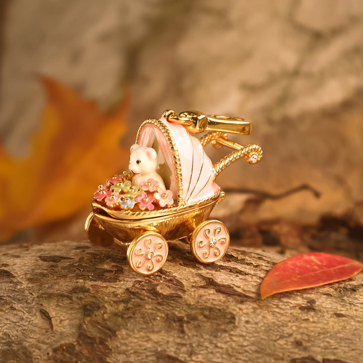 이 펜던트 목걸이는 고온에서 에나멜로 삽입되며 장인은 층별로 색상 레이어를 적용합니다. 사랑스러운 곰이 앉는 유모차는 우리의 어린 시절의 꿈을 전하는 운반자입니다. 우리는이 진정한 장인의 창조가 십대 소녀의 로맨스를 상기시켜주기를 바랍니다. 보석 목적지에서 선물에 빠지십시오.