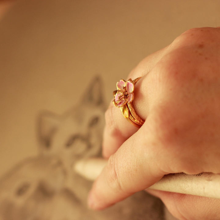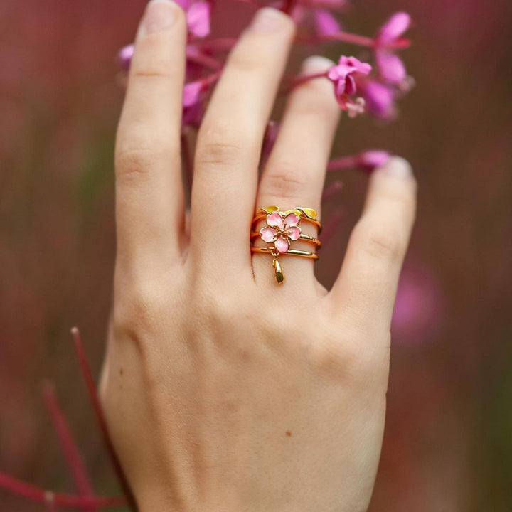 cherry blossom enamel ring set
