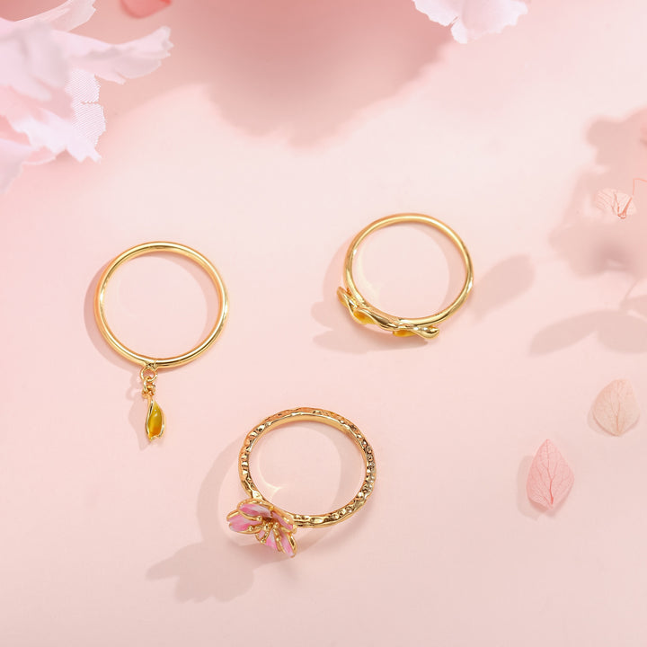 enamel sakura ring set